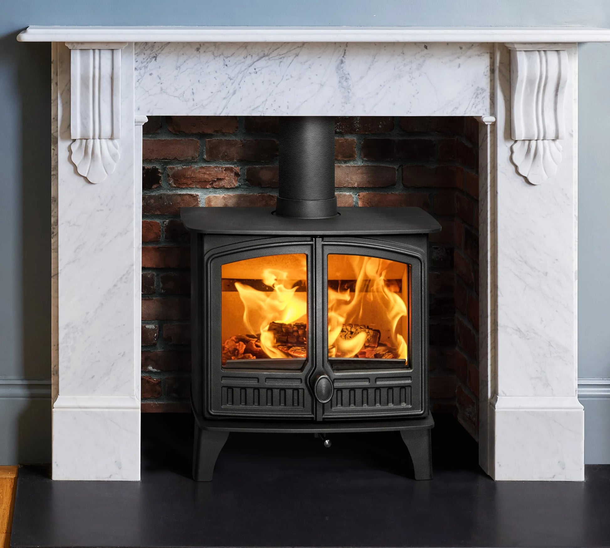 This Eco Design 2022 ready stove displays a large viewing window, through which you can see the wood burning beautifully and effortlessly. The results – a warm orange glow across the whole bed of the firebox. Choose the Herald 5 for its efficiency, you get the same extensive heat output but fewer logs are needed, plus this stove offers an internal riddling de-ashing grate and ashpan as standard. The Herald 5 not only offers superb controllability, its traditional design with a contemporary twist also means it will be a prominent feature in any space.